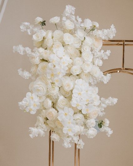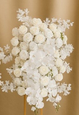 A luxurious 100cm floral runner crafted with a blend of premium white roses, orchids, and delicate blossoms. Its cascading design and intricate texture make it a versatile showpiece for weddings, luxury events, or photo installations.