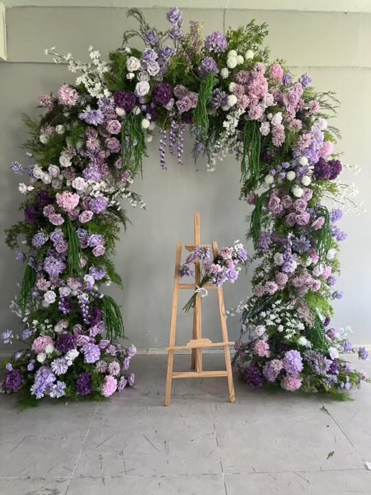 Round Arch - Purple , White, Greenery Arch with Stand